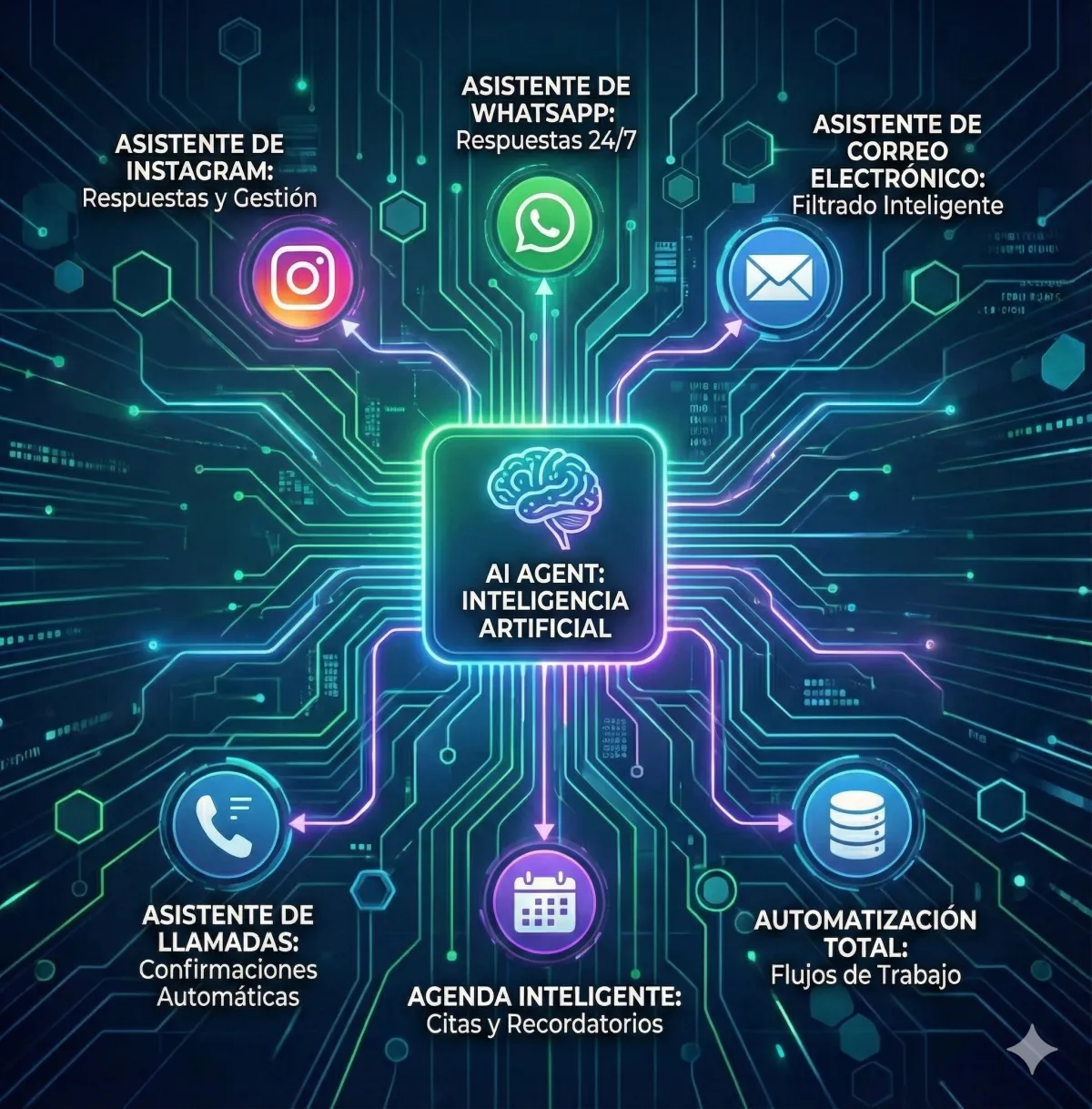 En nuestra agencia aplicamos IA donde de verdad impacta en el día a día: desde conseguir clientes nuevos en automático, hasta organizar tu flujo de leads y atender a tus clientes 24/7 sin que tengas que estar pendiente del móvil.